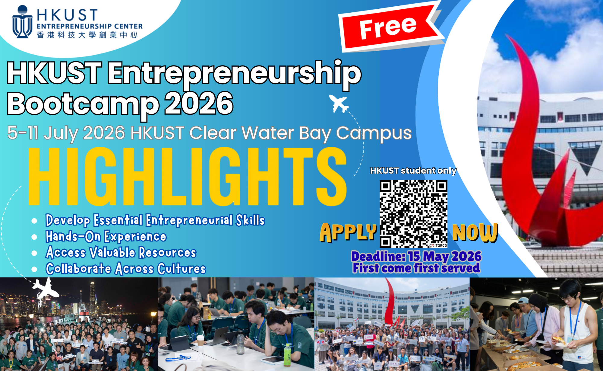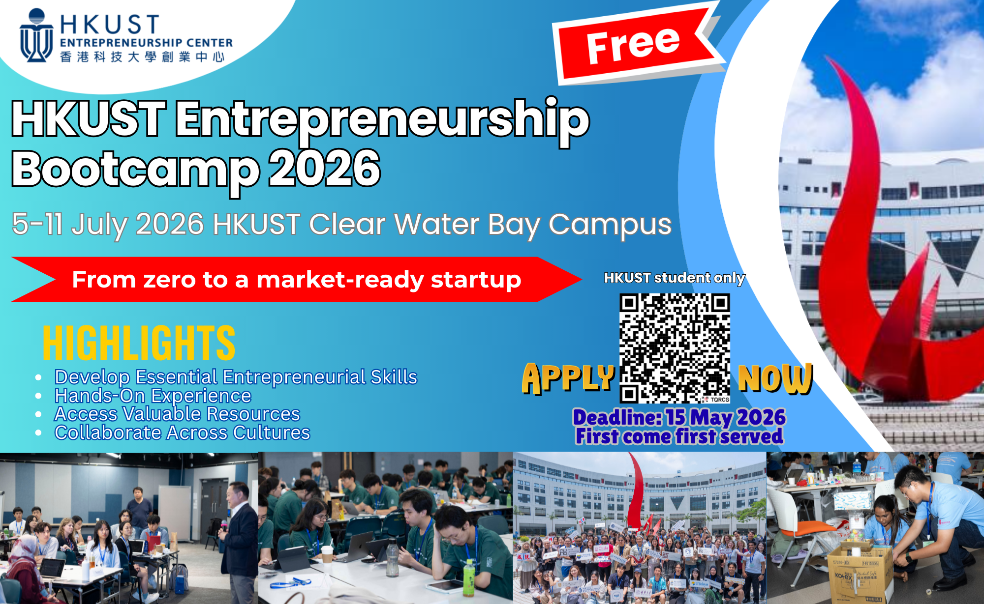 We are delighted to invite you to participate in the upcoming week-long summer bootcamp—HKUST Entrepreneurship Bootcamp 2026! This exciting opportunity offers a unique learning experience and equips you with valuable skills in a collaborative and supportive environment.